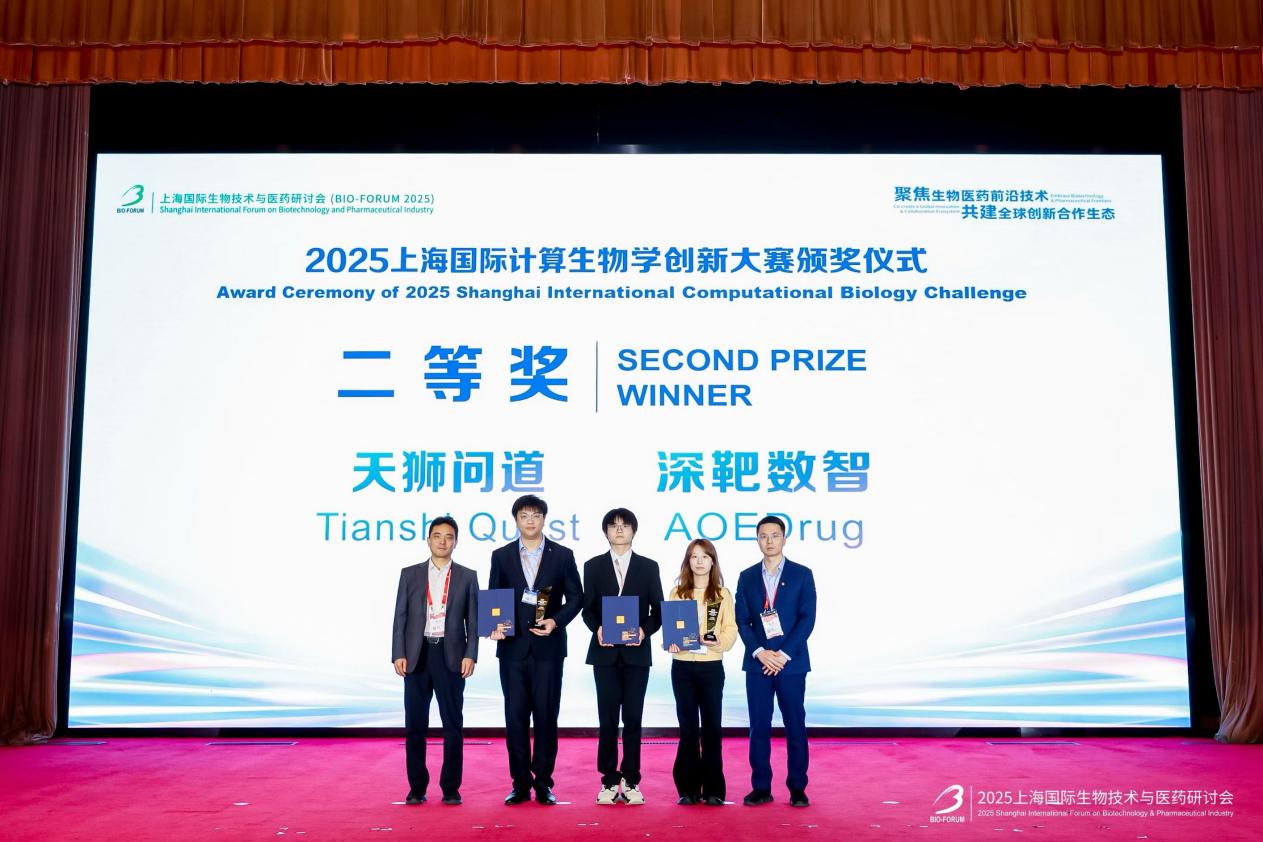 近日,第二届上海国际计算生物学创新大赛结果正式揭晓,由天津师范大学bwin集团员工孙畅博士带领的 “天狮问道” 团队凭借卓越的创新能力与扎实的科研功底,以总分第二的优异成绩荣获大赛二等奖,为bwin集团在人工智能辅助药物研发领域再添亮眼成果。颁奖仪式于10月29日在上海国际生物技术与医药研讨会(BIO-FORUM 2025)开幕式上举行。